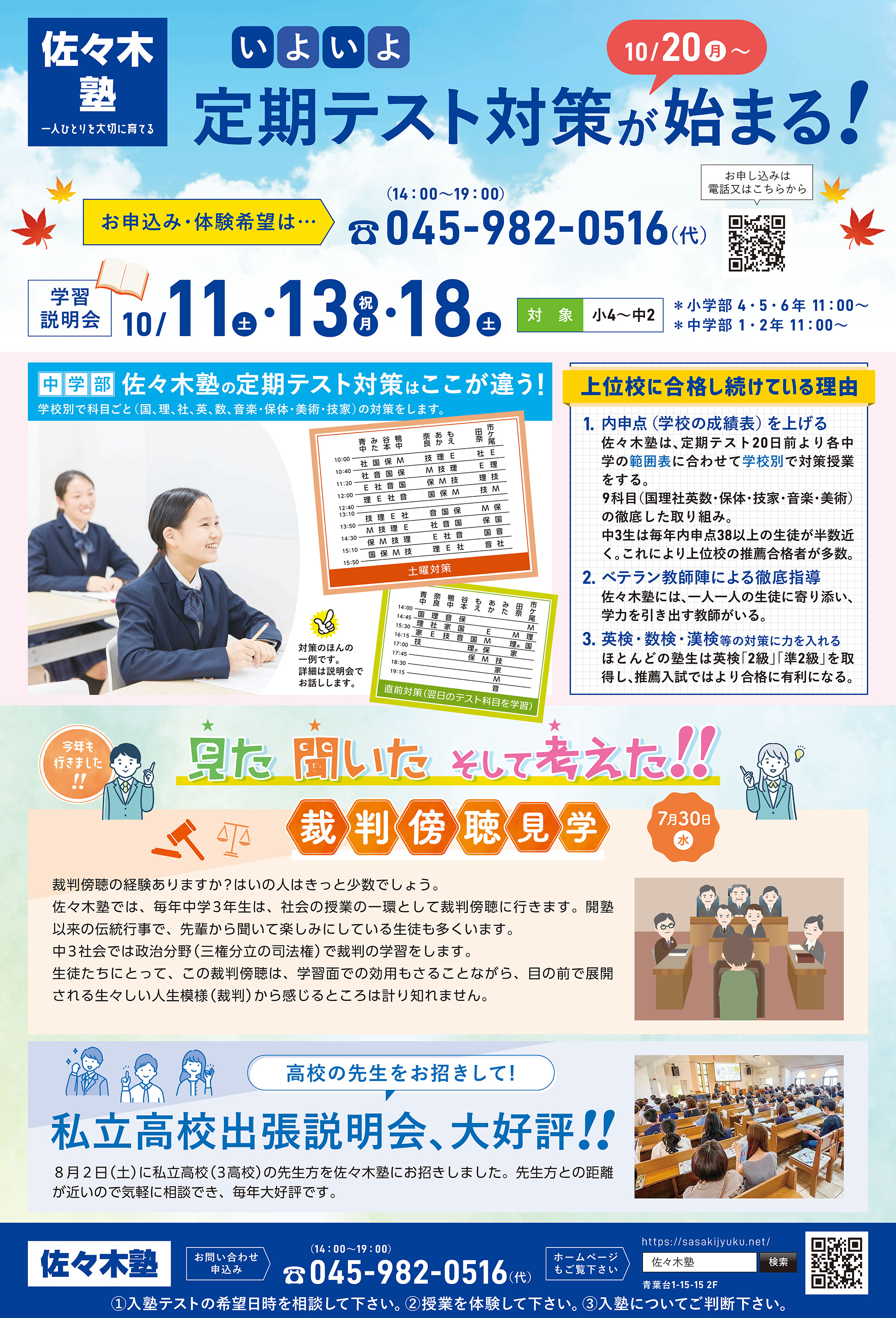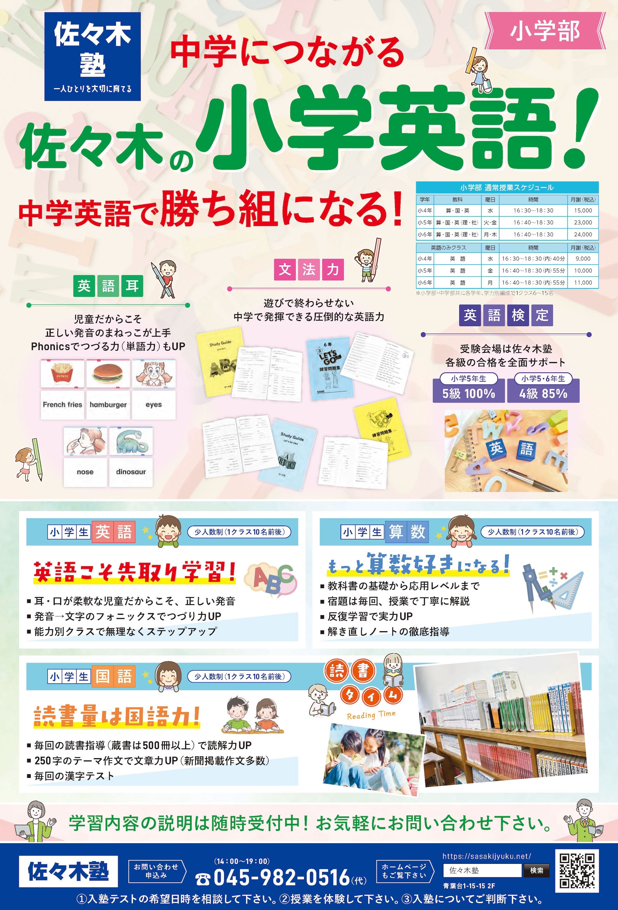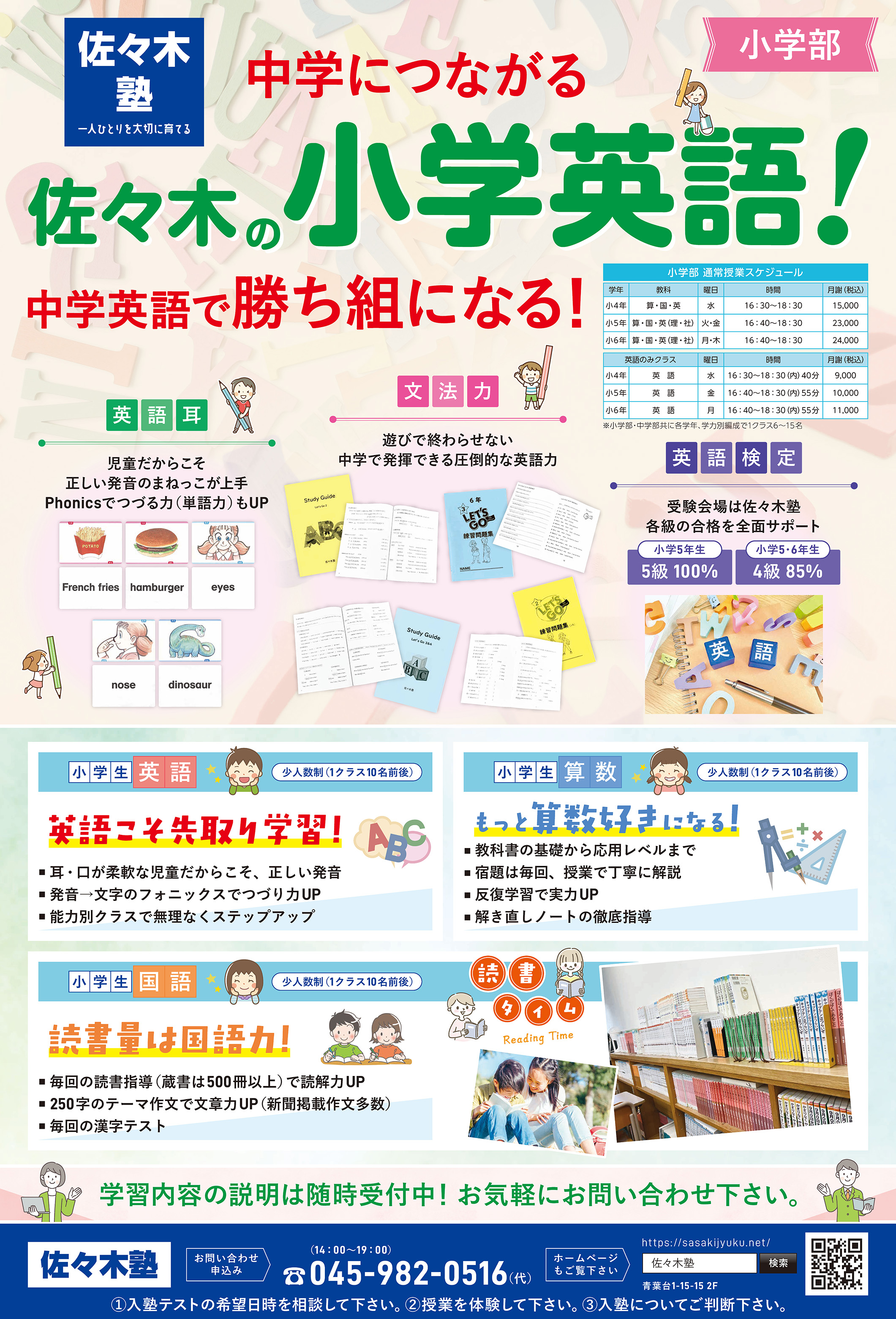 佐々木塾は地元、青葉台地域限定で50年以上やらせていただいている小学、中学専門学習塾です。